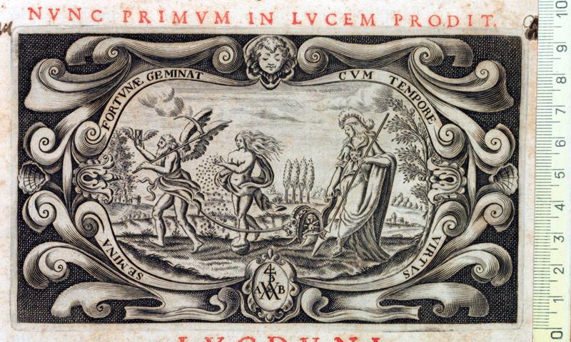 La Fortuna tirant la llavor davant el Temps que porta un carro dirigit per Minerva personificant el valor