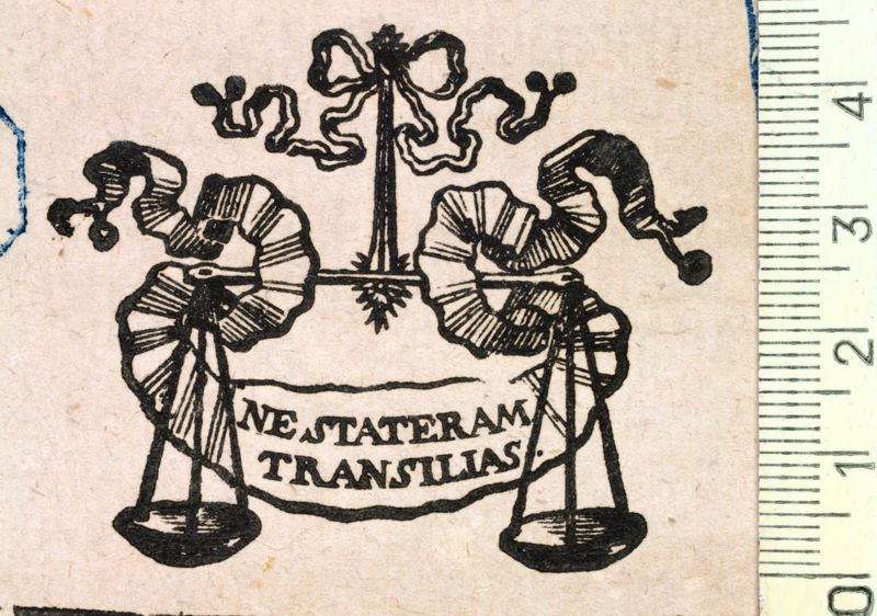 Una balança i un filacteri on figura el lema