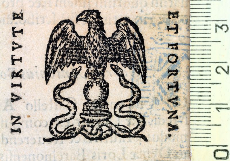 Hem trobat 33 Marques d'impressors que conté el lema In virtute et fortuna