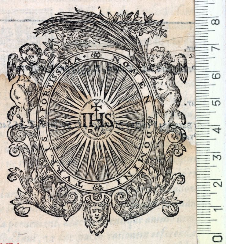 Escut dels Jesuïtes amb el monograma de Jesucrits envoltat amb la Lema