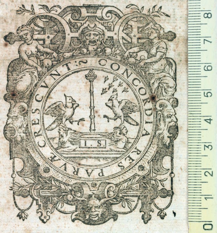 Found 12 Printers' devices containing the motto Concordia res parvae crescunt
