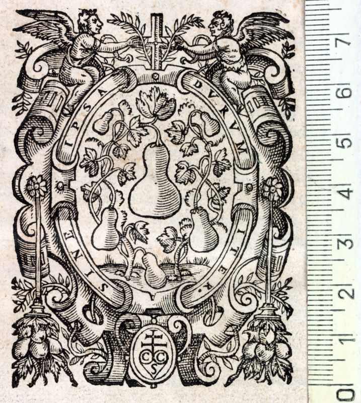Una perera amb les inicials del llibreter a la part inferior